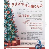 はくばく文化ホール第3回ウィークエンドコンサートを開催します。12月12日(金)19:00開演のロビーコンサート(入場無料)です。大勢のみなさまの御来場をお待ちしております。